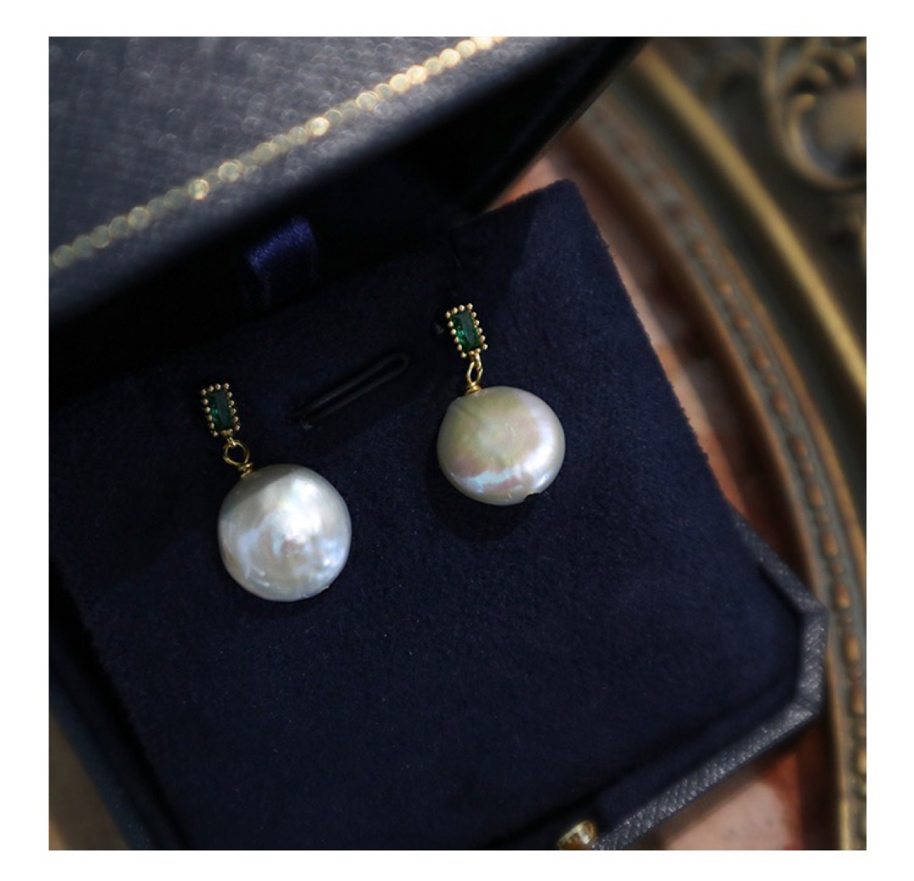 品名:祖母绿天然海水珍珠耳环(真多麻·灰)