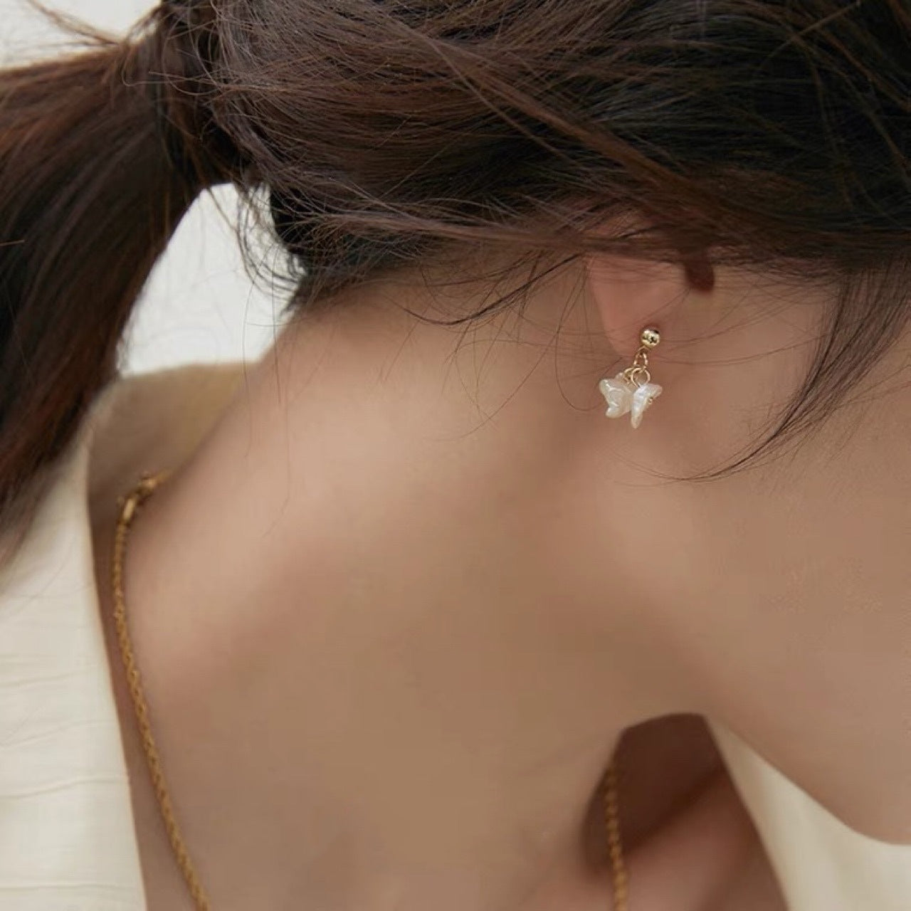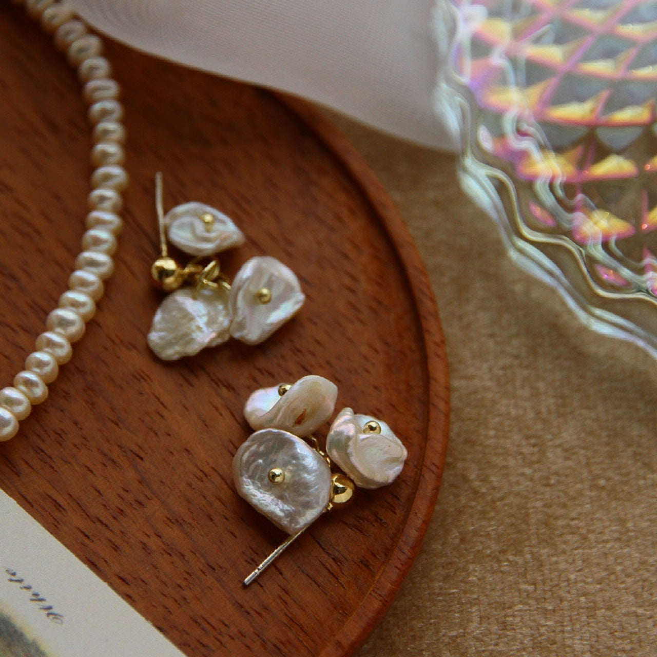 天然花片珍珠耳钉异形碎粒法式简约优雅淑女耳饰耳环银针高级灰潮