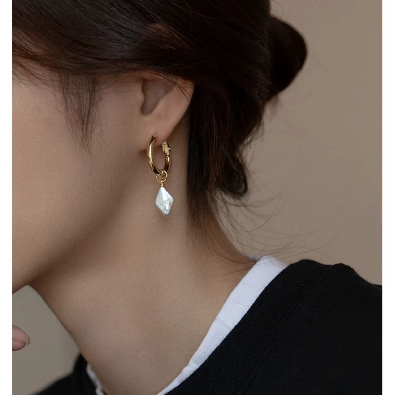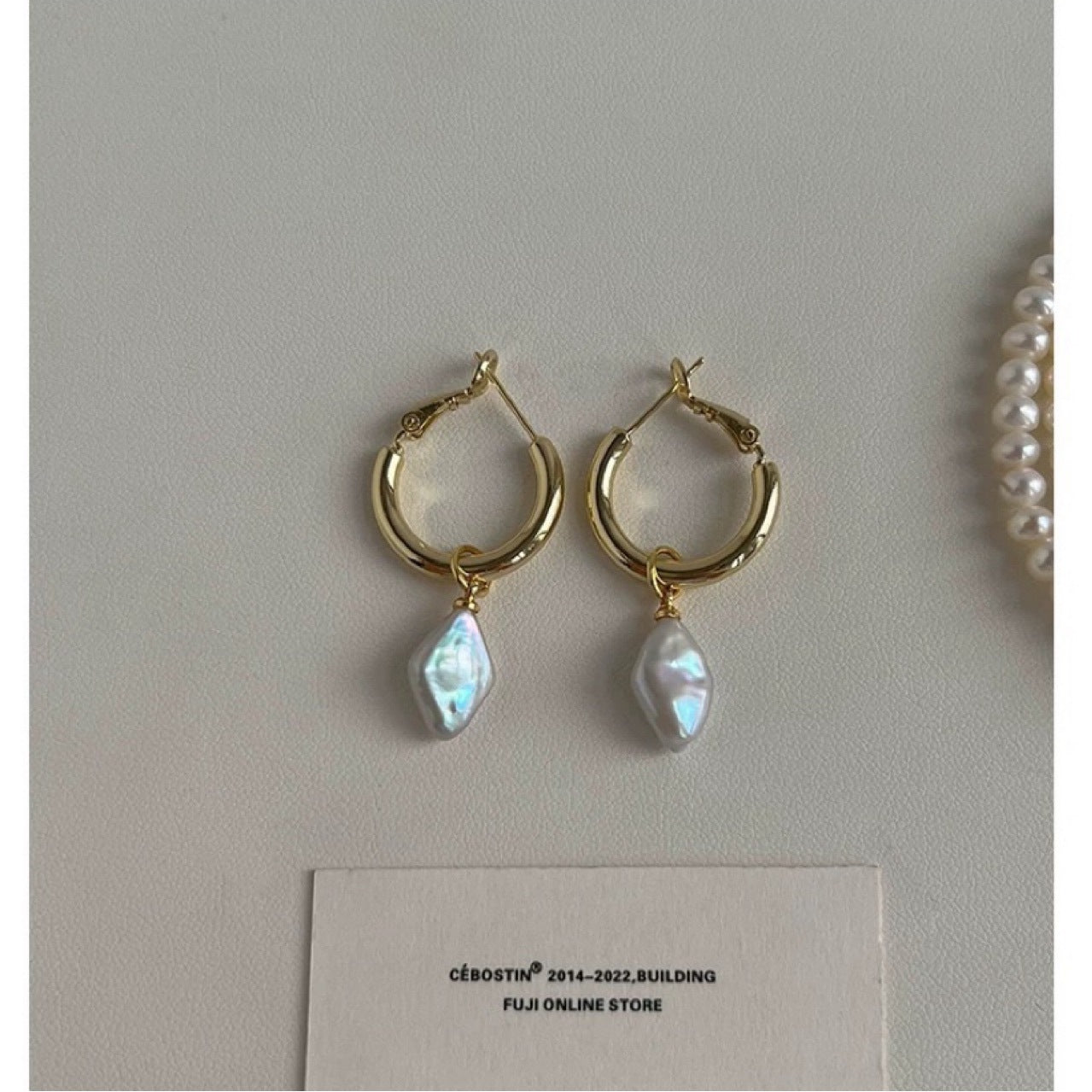 天然菱形巴洛克珍珠耳环女独特小众潮耳坠高级感2024新款爆款耳饰