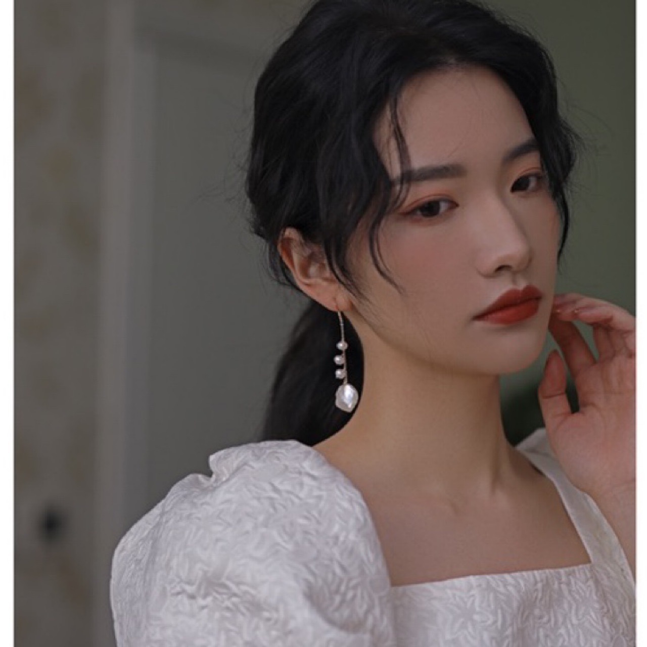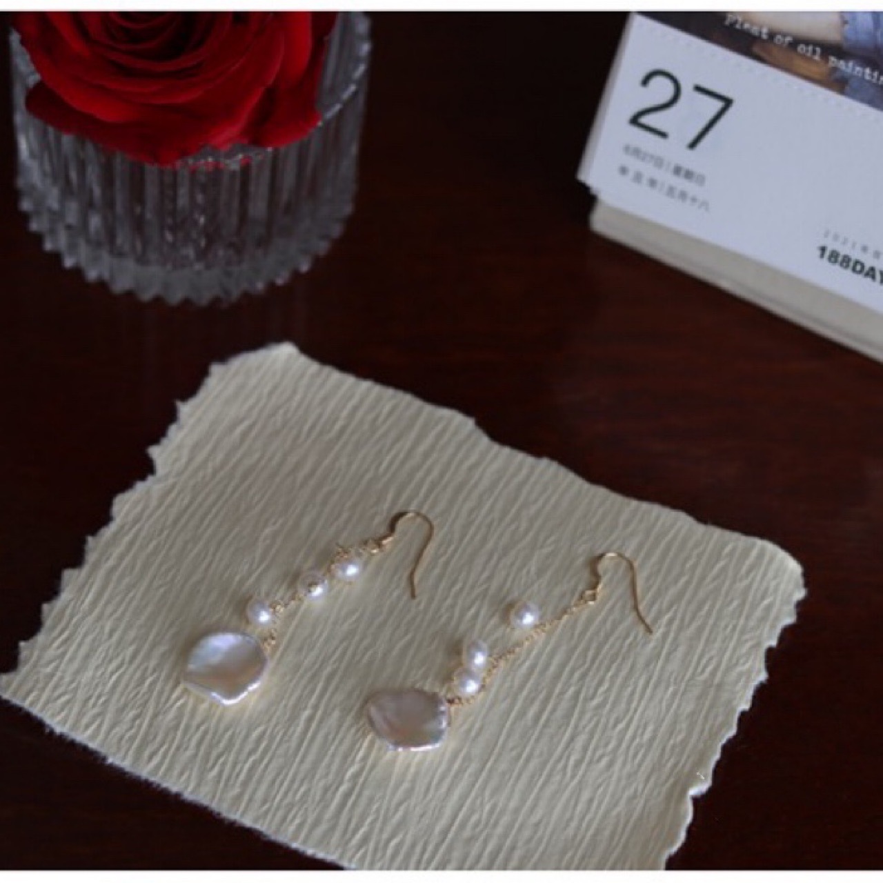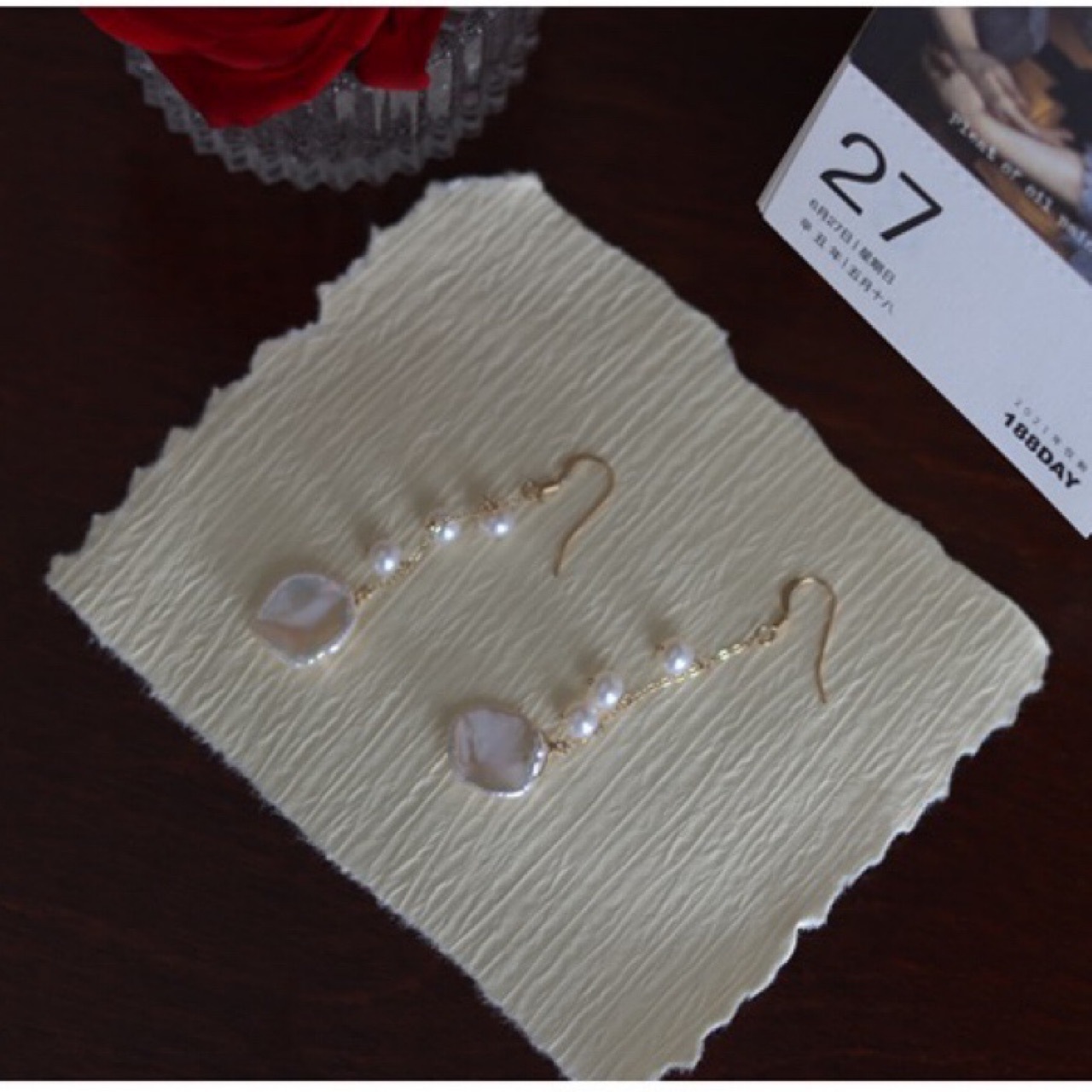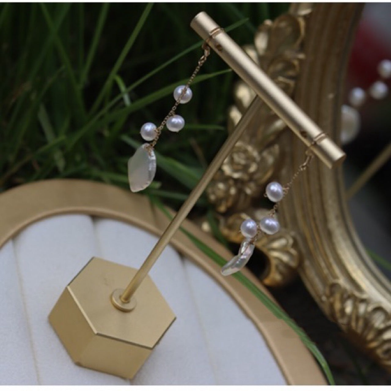 异形强光巴洛克自然花瓣天然珍珠耳环14K包金流苏长款耳钩