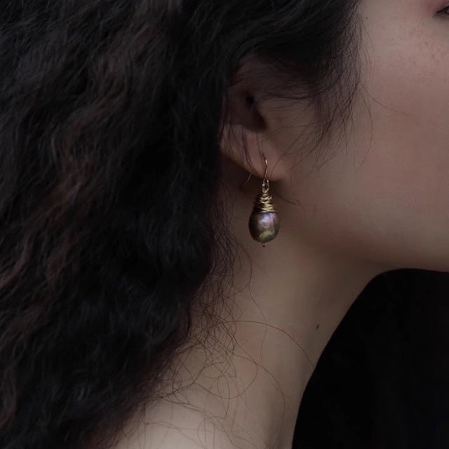 戴珍珠女孩巴洛克怪色天然珍珠耳饰耳钩生日礼物耳环耳饰时尚大方