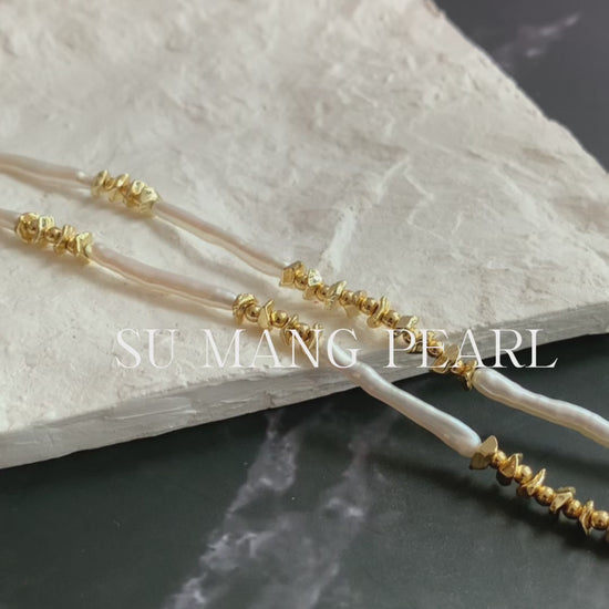 Each natural freshwater toothpick pearl has its own natural texture and luster, mixed with gold metal pieces. The collision of retro and fashion is absolutely stunning~ Wearing it around your neck is like a walking business card of texture. It's so niche that you won't have the same style as others, and the high-end vibe is directly attached to you!