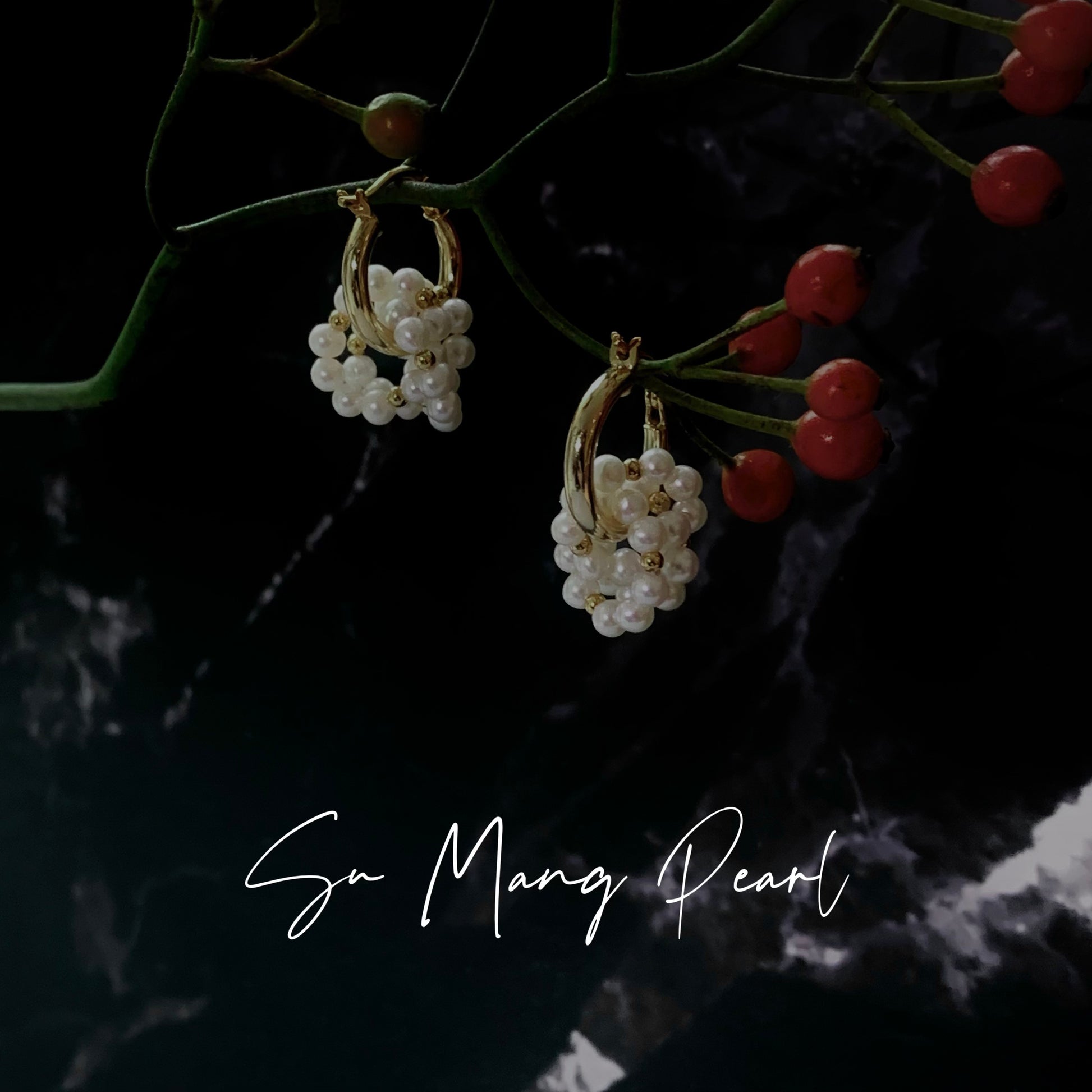 Pearls dangle like a cluster of ripe grapes, their luster enhanced by a refined gold hoop. Embrace the full design for vintage allure, or let the hoop shine solo for understated sophistication. A design that moves seamlessly between retro charm and contemporary chic.