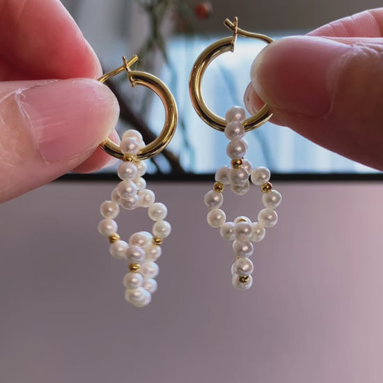 Pearl hoops interlace in irregular harmony, elevated by a polished gold hoop. Stack them for bold, textured drama, or wear one alone for minimalist elegance. Versatile enough for the office, the café, or a night out—your style, your choice.